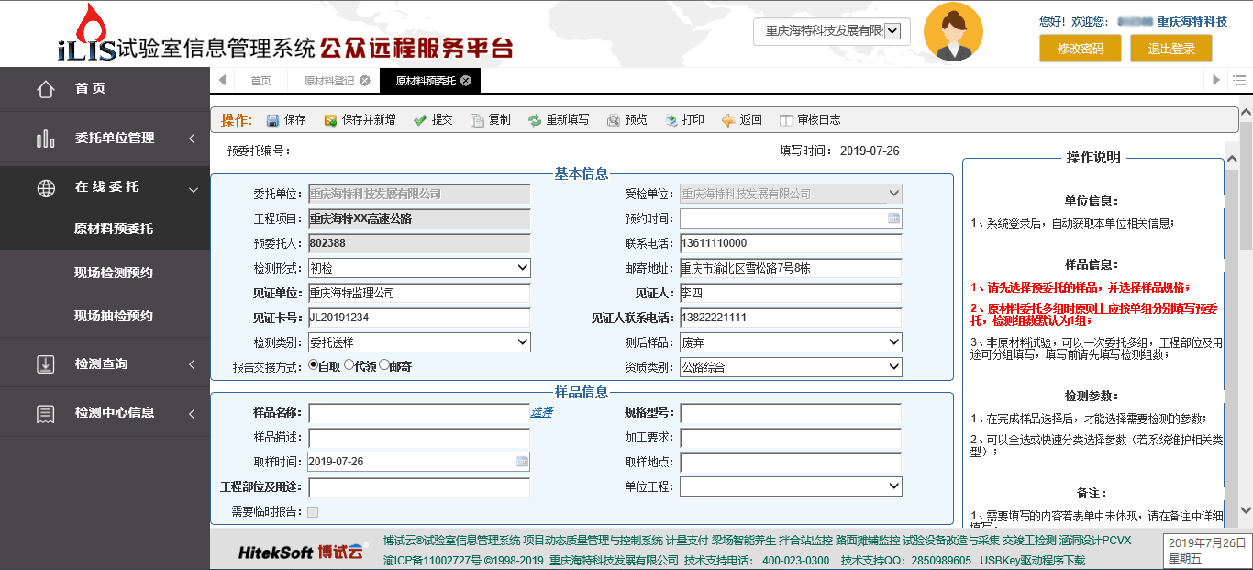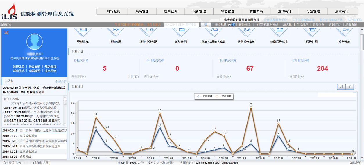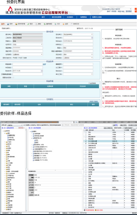 (委托收樣,樣品管理、合同管理、收費(fèi)管理、檢測/審核/批準(zhǔn)管理,報告打印管理)