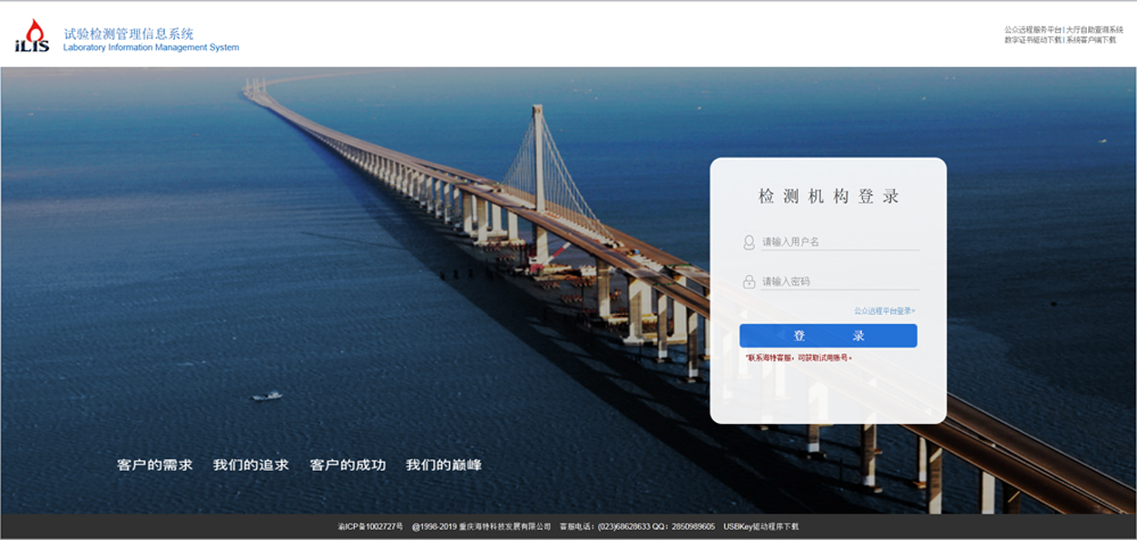 系統(tǒng)所有功能均基于Internet互聯(lián)網(wǎng)運(yùn)行,軟件使用不受時間和地域的限制,現(xiàn)場檢測可即時錄入檢測數(shù)據(jù),出差也可簽發(fā)檢測報告,只需要輸入一個網(wǎng)址即可。得益于先天的架構(gòu)優(yōu)勢,本系統(tǒng)具有良好的擴(kuò)展性,如工地試驗室管理、駐外分室管理、現(xiàn)場試驗檢測等均可實現(xiàn)在線分布式信息化無縫管理。